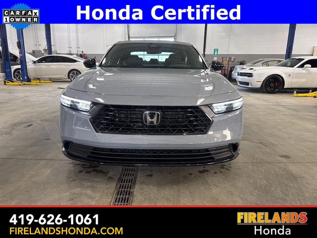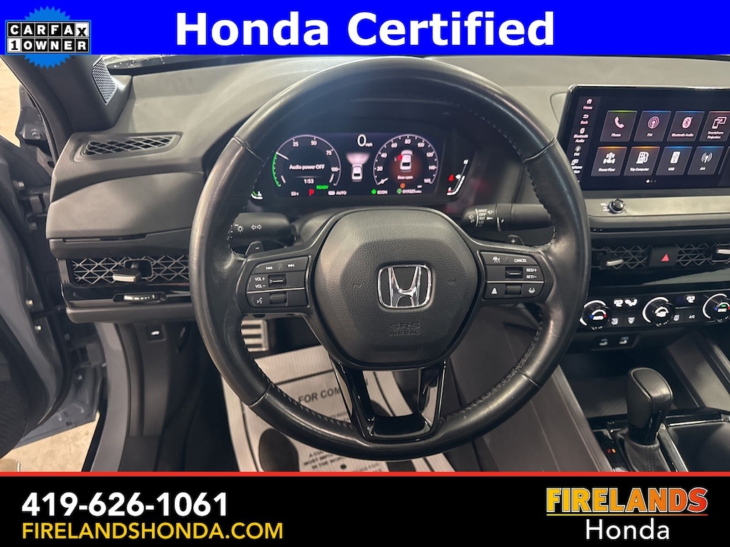 Firelands Honda is proud to offer this gorgeous 2024 Honda Accord Hybrid in Meteorite Gray Metallic. This Accord Hybrid has been checked by our award winning service department. Hot features include: Bluetooth Hands Free, Back Up Camera, Remote Start, Local Trade, Adaptive Cruise Control, Balance of Factory Warranty, Service Records Available, Heated Leather Seats, Locally Owned New Car Trade, Lane Departure Warning, Apple Carplay/Android Auto, Blind Spot Detection, Fog Lights, Automatic Emergency Braking, Forward Collision Warning, Rear Cross Traffic Alert, Honda Certified, Moonroof / Sunroof, Clean CARFAX, One Owner, No Accidents, Memory Seats. Certified.