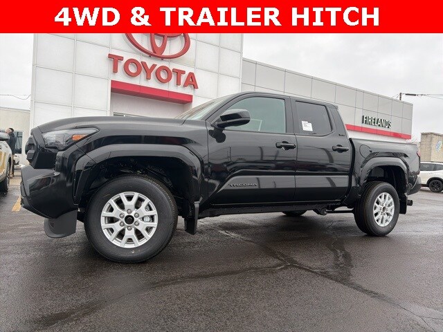 Black 2026 Toyota Tacoma SR5 4WD 8-Speed Automatic 2.4L 4-Cylinder 4WD/4X4/AWD, CarPlay, Android Auto, Bluetooth, Backup Camera, Lane Departure Warning, Brake Assist, Steering Wheel Controls, Cruise Control, Keyless Start, Keyless Entry, Premium/Alloy Wheels, Trailer Hitch, Tacoma SR5, 4WD, 3.583 Axle Ratio, 6 Speakers, ABS brakes, All Weather Floor Liners, Alloy wheels, Anti-whiplash front head restraints, Apple CarPlay/Android Auto, Auto-dimming Rear-View mirror, Black Badge Overlay, Brake assist, Door Edge Guard, Electronic Stability Control, Emergency communication system: Safety Connect (up to 10-year trial subscription), Exterior Parking Camera Rear, Fabric Seat Trim, Front Bucket Seats, Fully automatic headlights, Heated door mirrors, Illuminated entry, Knee airbag, Low tire pressure warning, Mudguards, Occupant sensing airbag, Outside temperature display, Overhead console, Phone Cables - Smart Usb, Radio: 8" Toyota Audio Multimedia, Rear step bumper, Rear window defroster, Remote keyless entry, Speed-sensing steering, Spray-on Bed Liner, Steering wheel mounted audio controls, Traction control, Trip computer, Wheels: 17" Styled Alloy.Recent Arrival!Whether you are looking for a Great Deal, a Great Price, or a Great Value, Firelands Toyota Volkswagen of Wooster has you covered. Join us for the BEST Experience you will ever have. If we do not have what you are looking for, just let us know and we will find it. We have access to any make/model and also offer Certified Pre-Owned vehicles too. We can also locate vehicles with just about any option to include Sunroof, Moonroof, Navigation System, Heated Steering Wheel, HomeLink, LED Headlights, DVD Player, Rear Seat Entertainment, Backup Camera, Brake Assist, Automatic Emergency Braking, Blind Spot Monitoring, Cross Traffic Alert, Rear Cross Traffic Alert, Lane Departure Warning, Night Vision, Head-up Display, Automatic Parking, Cruise Control, Adaptive Cruise Control, Rain Sensing Wipers, Remote Engine Start, Memory Seat, Leather Seats, Heated Seats, Cooled Seats, Third (3rd) Row Seats, Steering Wheel Controls, Multi-zone Climate Control, Keyless Entry, Allow Wheels, Premium Wheels, Apple CarPlay, Android Auto, WiFi Hotspot, Premium Audio Sound System, Bluetooth® Audio, Hands-Free Audio, Portable Audio Connection, USB Port, Satellite Radio, Trailer Tow, Tow Hitch, 4WD, AWD, FWD, Disability Equipped, Keyless Start, Security System, Roof Rack, Dual Rear Wheels, Stability Control, and much more!