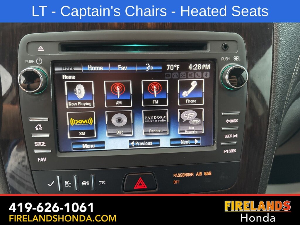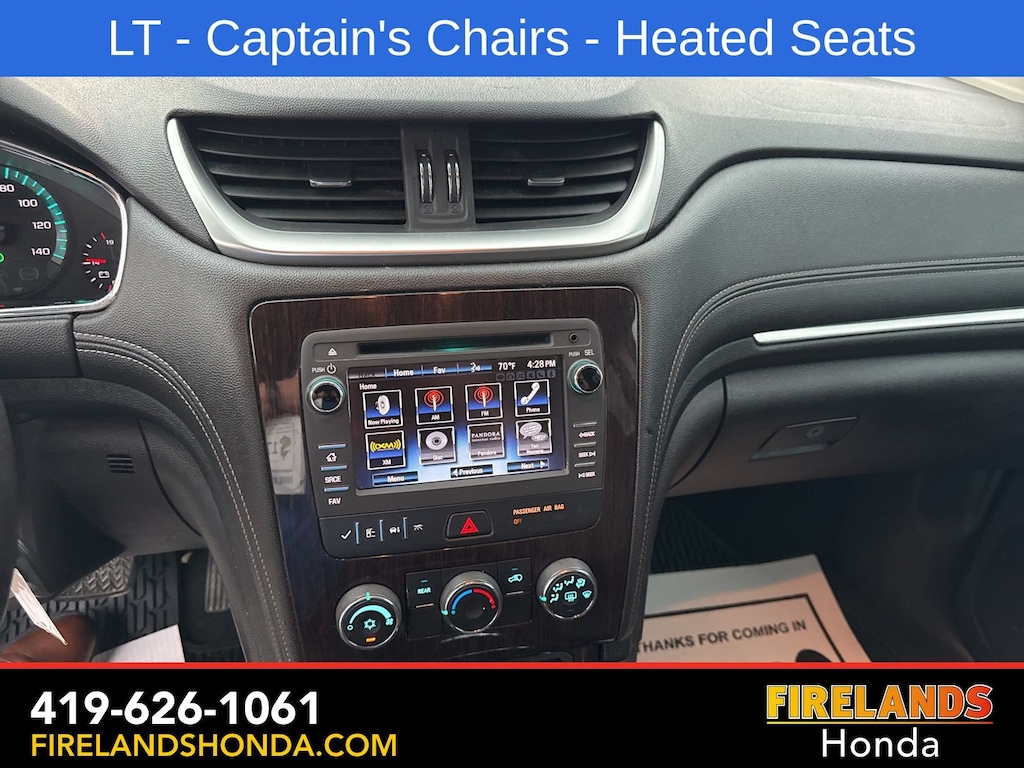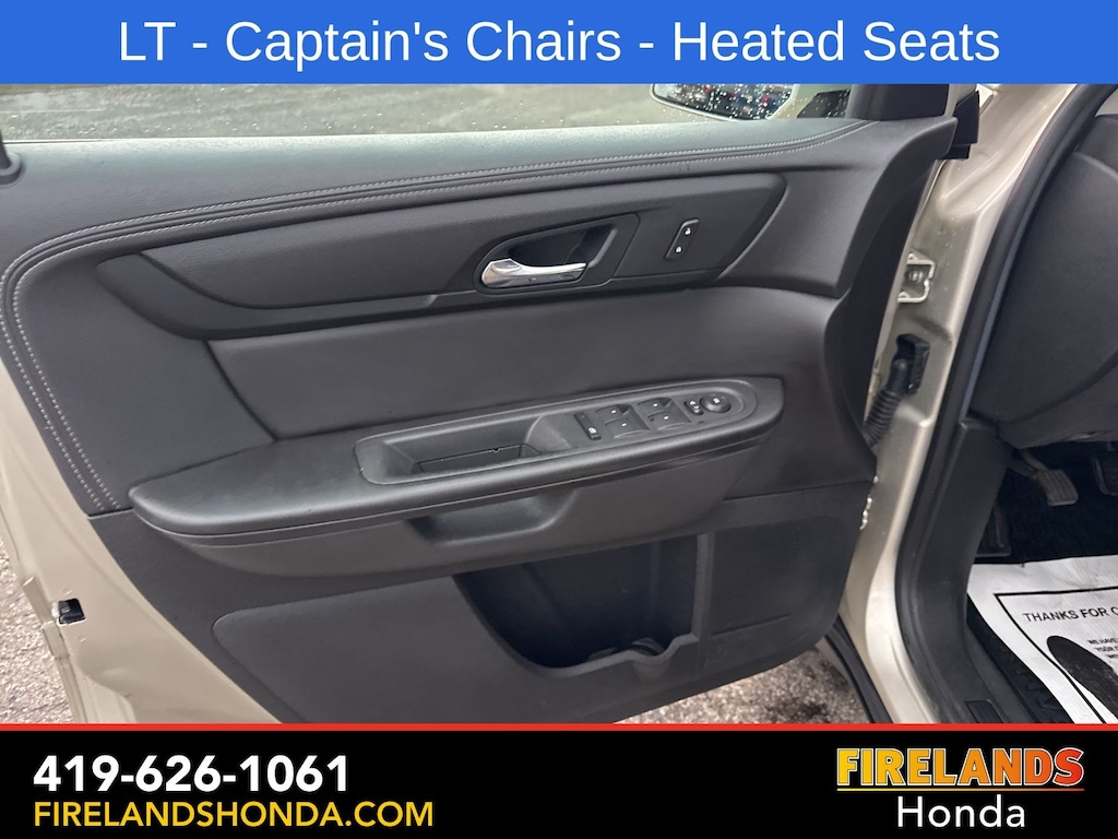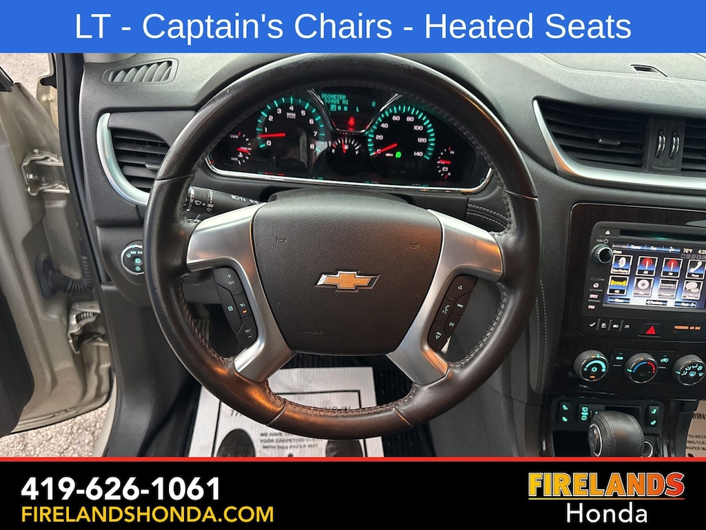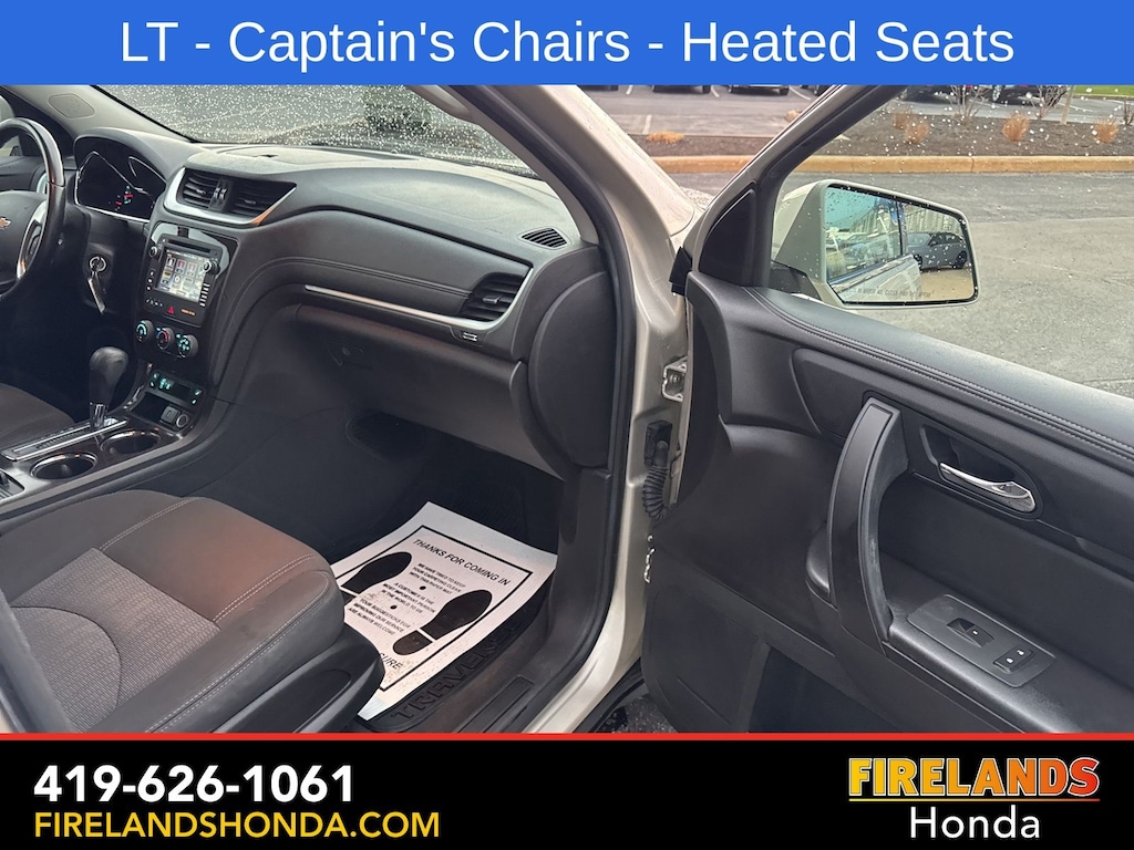 Firelands Honda is proud to offer this fantastic-looking 2017 Chevrolet Traverse in Champagne Silver Metallic. This Traverse has been checked by our award winning service department. Hot features include: Bluetooth Hands Free, Back Up Camera, Remote Start, Service Records Available, Fog Lights, Clean CARFAX, One Owner, No Accidents, 7 Passenger Seating, Captains Chairs, Heated Front Seats.