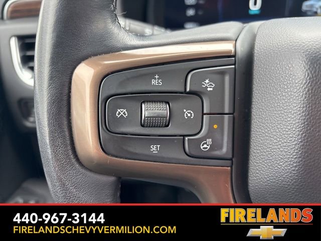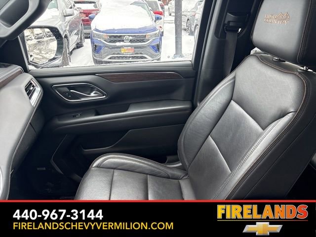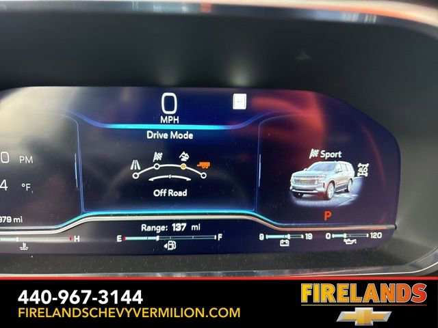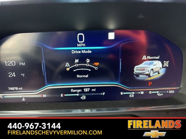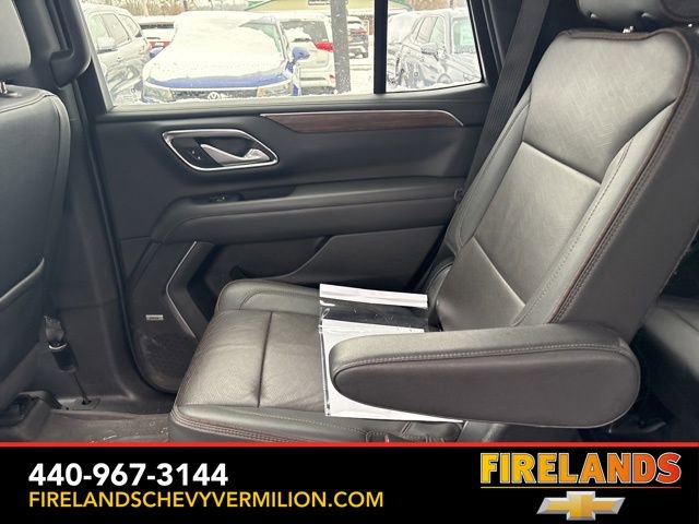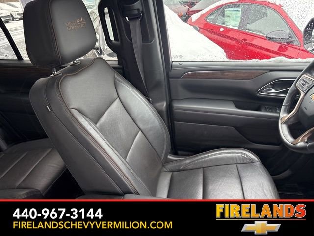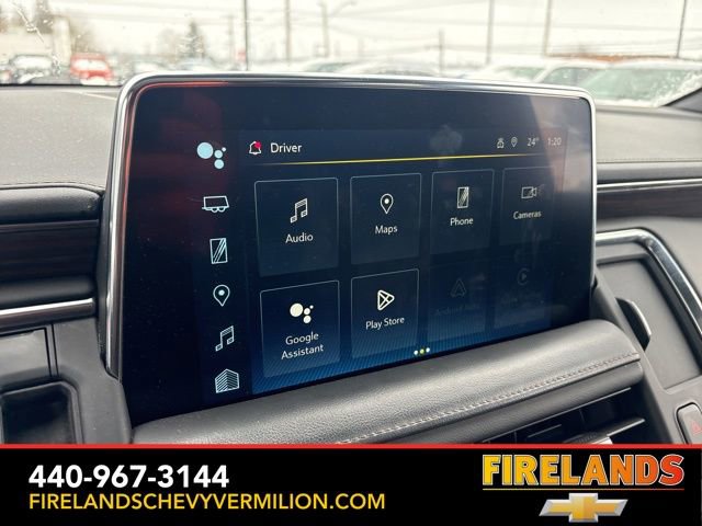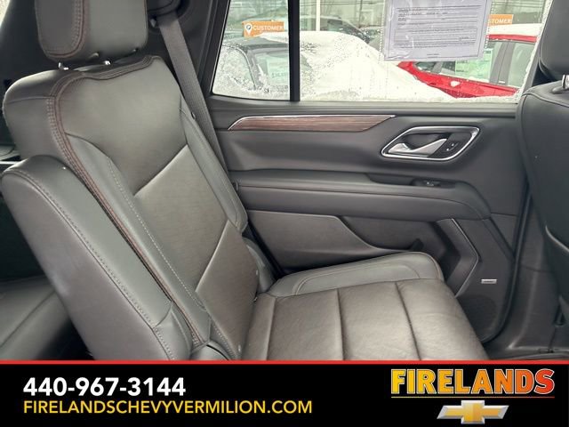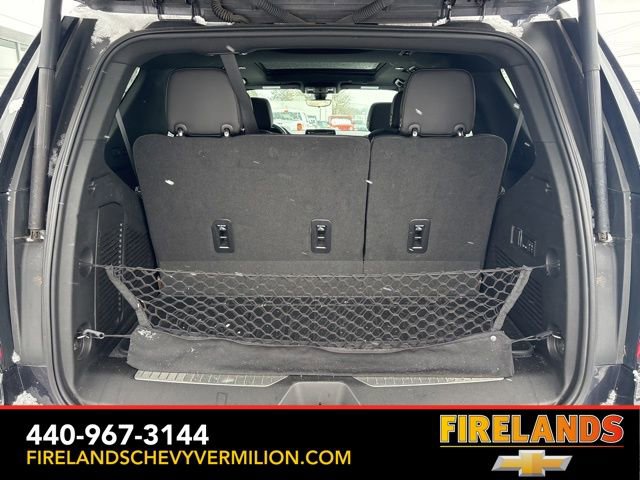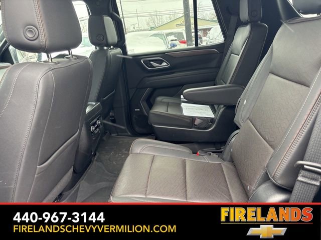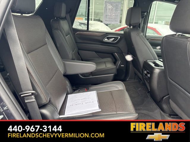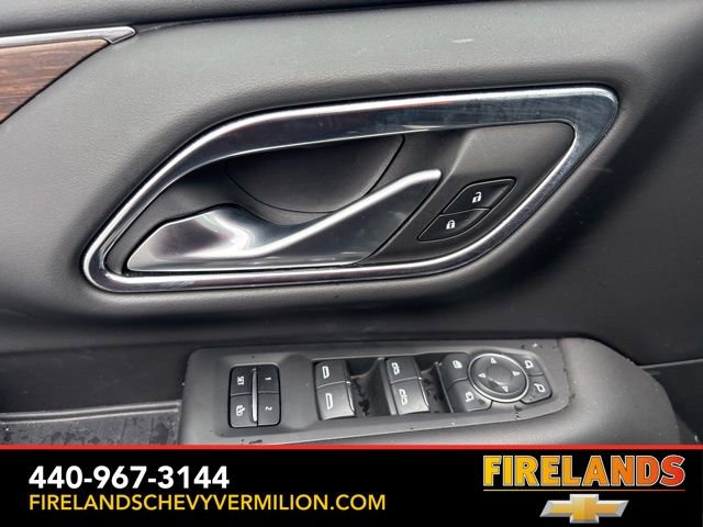 Thank you for allowing us to serve you. Our amazing hospitality starts with us opening the door for you with a smile and a humble handshake and ends with a full tank of gas on every vehicle...and sometimes a hug. Buy with confidence at Firelands Chevy of Vermilion, where you receive a copy of our detailed service report and a free vehicle history report by CarFax.Clean CARFAX. Like New, One Owner, Navigation System, New Tires, Heated Steering Wheel, Heated Seats, Leather Seats, Remote Start, Cruise Control, Steering Wheel Controls, Power Lift Gate, Great Price, Clean CARFAX, 4WD/4X4/AWD, Heated & Cooled Seats, Sunroof/Moonroof, Panoramic Roof, CarPlay, Android Auto, Bluetooth, Backup Camera, Rain Sensing Wipers, Blind Spot Monitoring, Adaptive Cruise Control, Lane Departure Warning, Parking Sensors, Brake Assist, Multi Zone Climate Control, Keyless Start, Keyless Entry, Premium Audio, Third Row Seats, Premium/Alloy Wheels, Tow Package, 4WD, Jet Black Leather, 15 Diagonal Multi-Color Head-Up Display, 1st & 2nd Row Color-Keyed Carpeted Floor Mats, 2-Speed Active Electronic AutoTrac Transfer Case, 3rd Row 60/40 Power-Folding Split-Bench Seat, 3rd row seats: split-bench, 4-Wheel Disc Brakes, ABS brakes, Adaptive suspension, Alloy wheels, Apple CarPlay/Android Auto, Auto High-beam Headlights, Auto-leveling suspension, Automatic Stop/Start, Automatic temperature control, Bose 10-Speaker Centerpoint Surround Audio Sys Ft, Brake assist, Bright Front & Rear Door Sill Plates, Bumpers: body-color, Chrome Door Handles w/Body-Color Strip, Color-Keyed Carpeting Floor Covering, Compass, Driver & Front Outboard Passenger Airbags, Driver vanity mirror, Dual Exhaust System, Dual front side impact airbags, Dual-Pane Power Panoramic Sunroof, Electronic Stability Control, Emergency communication system: OnStar and Chevrolet connected services capable, Enhanced Driver Information Center, Floor Console, Front & Rear Black Bowtie Emblems (LPO), Front Bucket Seats, Front High-Back Reclining Bucket Seats, Fully automatic headlights, Garage door transmitter, Hands-Free Rear Power Programmable Liftgate, HD Surround Vision, Heads-Up Display, Heated & Ventilated Driver & Front Passenger Seats, Heated 2nd Row Outboard Seats, Heated Driver & Front Passenger Seats, Heated front seats, Heated rear seats, Heated Steering Wheel, Heated steering wheel, Hill Descent Control, Illuminated entry, Infotainment Display, Inside Rearview Auto-Dimming Rear Camera Mirror, Lane Change Alert w/Side Blind Zone Alert, Leather-Wrapped Steering Wheel, LED Daytime Running Lamps, Magnetic Ride Control Suspension, Memory seat, Memory Settings, Navigation System, Occupant sensing airbag, Outside Heated Power-Adjustable Mirrors, Outside temperature display, Power door mirrors, Power driver seat, Power Liftgate, Power passenger seat, Power Release 2nd Row Bucket Seats, Power Tilt & Telescopic Steering Column, Power-Retractable Assist Steps, Preferred Equipment Group 3LZ, Premium audio system: Chevrolet Infotainment System 3, Radio: Chevrolet Infotainment 3 Premium System, Rain sensing wipers, Rear air conditioning, Rear Camera Mirror Washer, Rear Cross Traffic Alert, Rear Pedestrian Alert, Remote keyless entry, Remote Start, Roof rack: rails only, Safety Alert Seat, Set of 4 Wheel Locks (LPO), SiriusXM Radio w/360L, Start/Stop System Disable Button, Steering wheel memory, Steering wheel mounted audio controls, Tilt steering wheel, Traction control, Turn signal indicator mirrors, Universal Home Remote, Variably intermittent wipers, Ventilated front seats, Wheels: 22 x 9 Sterling Silver Premium Painted, Wireless Charging.Awards:* ALG Residual ValueWhether you are looking for a Great Deal, a Great Price, or a Great Value, Firelands Chevrolet of VERMILION has you covered. Join us for the BEST Experience you will ever have. If we do not have what you are looking for, just let us know and we will find it. We have access to any make/model and also offer C