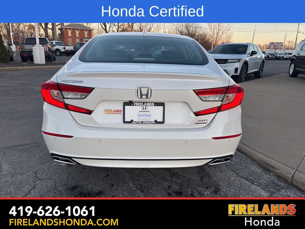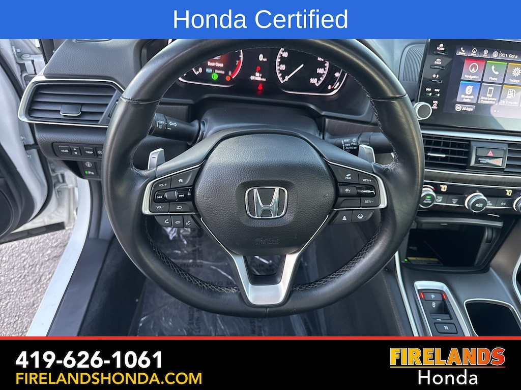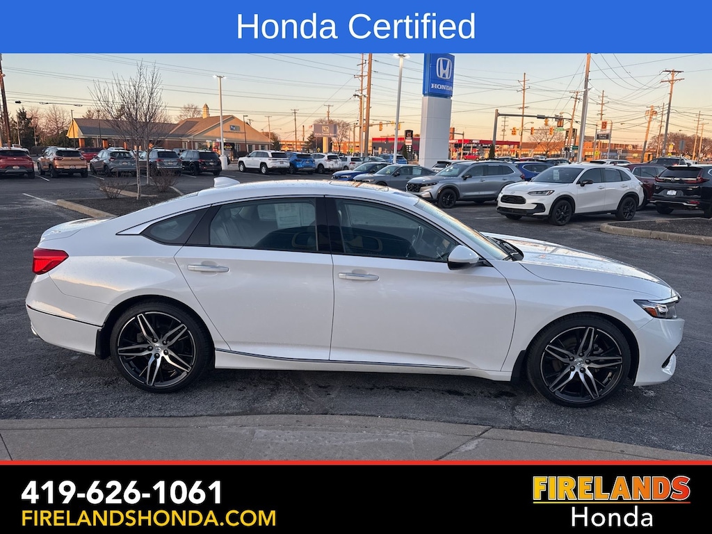 Firelands Honda is proud to offer this outstanding 2022 Honda Accord in Platinum White Pearl. This Accord has been checked by our award winning service department. Hot features include: Bluetooth Hands Free, Back Up Camera, Navigation / GPS, Remote Start, Local Trade, Adaptive Cruise Control, Balance of Factory Warranty, Service Records Available, Good Tires, Good Brakes, Heated Leather Seats, Locally Owned New Car Trade, Lane Departure Warning, Apple Carplay/Android Auto, Blind Spot Detection, Fog Lights, Automatic Emergency Braking, Forward Collision Warning, Rear Cross Traffic Alert, Heads Up Display, Wireless Charging Pad, Honda Certified, Moonroof / Sunroof, Clean CARFAX, One Owner, Memory Seats. Certified.