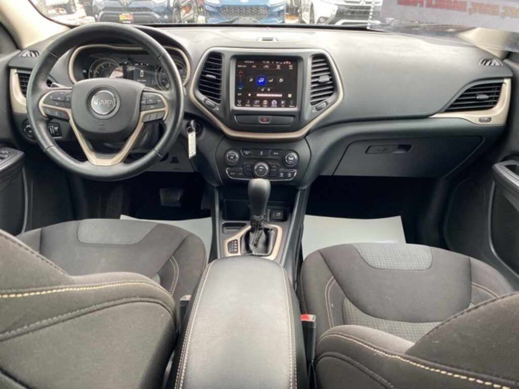 Great Price, Clean CARFAX, Heated Seats, Heated Steering Wheel, Remote Start, Bluetooth, Backup Camera, Steering Wheel Controls, Cruise Control, Keyless Start, Keyless Entry, Premium/Alloy Wheels, Cherokee Latitude, Granite Crystal Metallic Clearcoat, 1-Year SiriusXM Radio Service, 17" x 7" Aluminum Wheels, 3.73 Axle Ratio, 6 Month Trial (Registration Required), 600 Amp Maintenance Free Battery, 8.4" Touchscreen Display, Active Grille Shutters, All-Season Floor Mats, Alloy wheels, Auxiliary Transmission Oil Cooler, Brake assist, Bumpers: body-color, Cold Weather Group, Dual front impact airbags, Dual front side impact airbags, Electronic Stability Control, Engine Block Heater, Exterior Mirrors w/Heating Element, Front Bucket Seats, Front reading lights, Fully automatic headlights, GPS Antenna Input, Heated Front Seats, Heated Steering Wheel, Illuminated entry, Integrated Voice Command w/Bluetooth, Knee airbag, Nav Capable! See Dealer For Details, Normal Duty Suspension, Occupant sensing airbag, Overhead airbag, Panic alarm, ParkView Rear Back-Up Camera, Power Heated Mirrors, Premium Cloth Bucket Seats, Quick Order Package 21J, Radio: Uconnect 5.0, Radio: Uconnect 8.4, Rear side impact airbag, Rear window defroster, Remote keyless entry, Remote USB Port, Speed-sensing steering, Split folding rear seat, Steering wheel mounted audio controls, Telescoping steering wheel, Tilt steering wheel, Uconnect Access, Voltmeter, Windshield Wiper De-Icer.