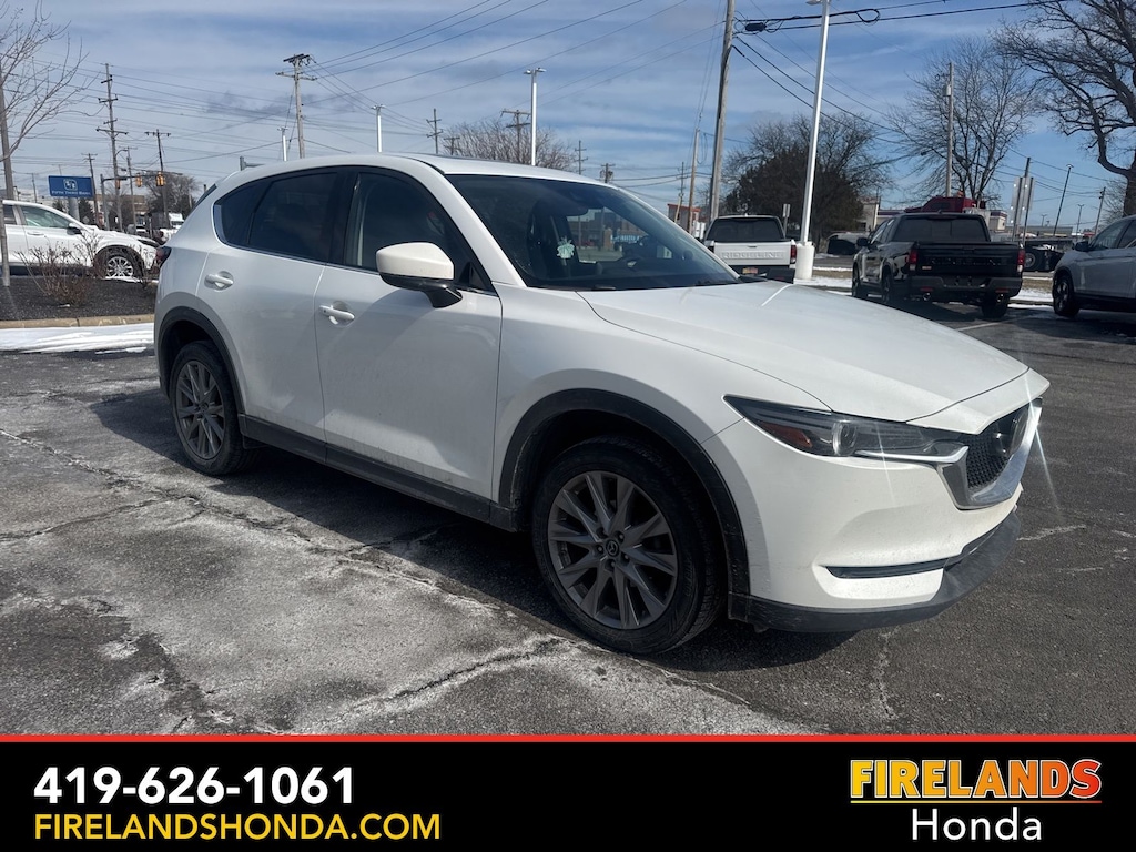 Firelands Honda is proud to offer this beautiful 2020 Mazda CX-5 in Snowflake White Pearl. This CX-5 has been checked by our award winning service department. Hot features include: Bluetooth Hands Free, Back Up Camera, Local Trade, Adaptive Cruise Control, Service Records Available, All-Wheel Drive, Heated Leather Seats, Lane Departure Warning, Apple Carplay/Android Auto, Blind Spot Detection, Automatic Emergency Braking, Forward Collision Warning, Rear Cross Traffic Alert, Moonroof / Sunroof, One Owner, Memory Seats, Heated Steering Wheel, Bose Speakers.