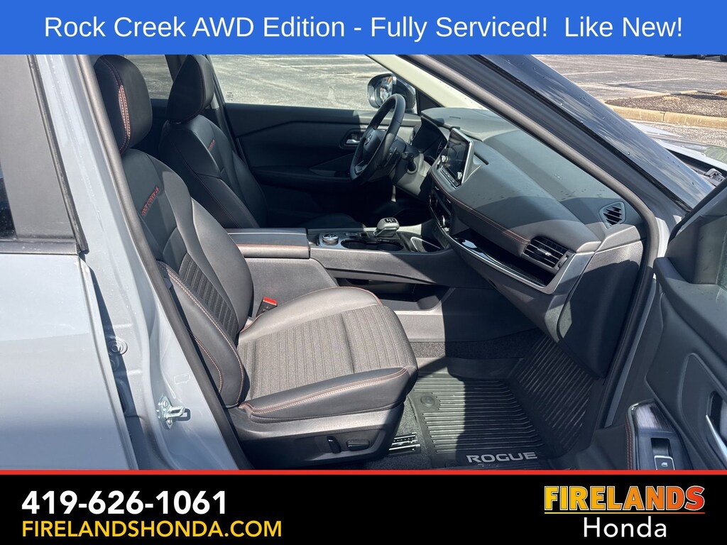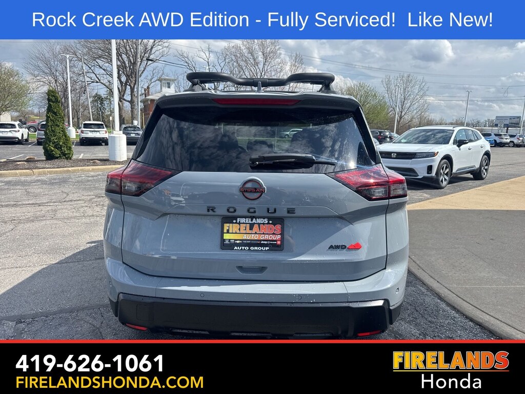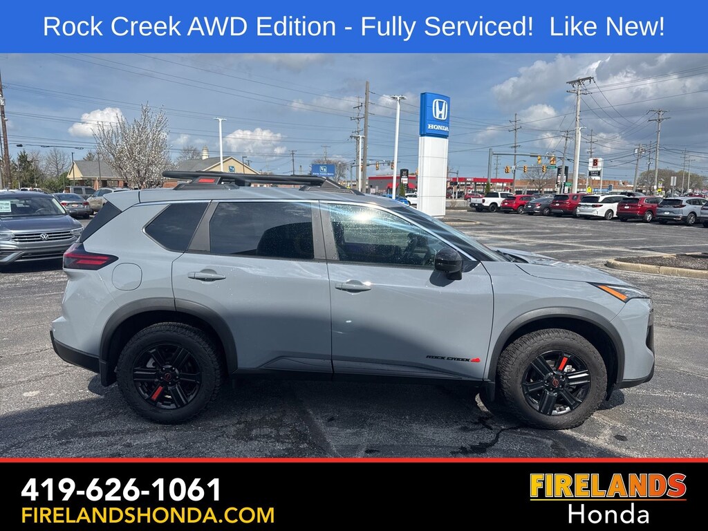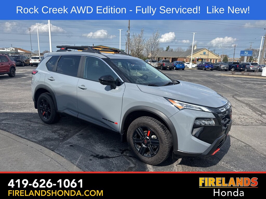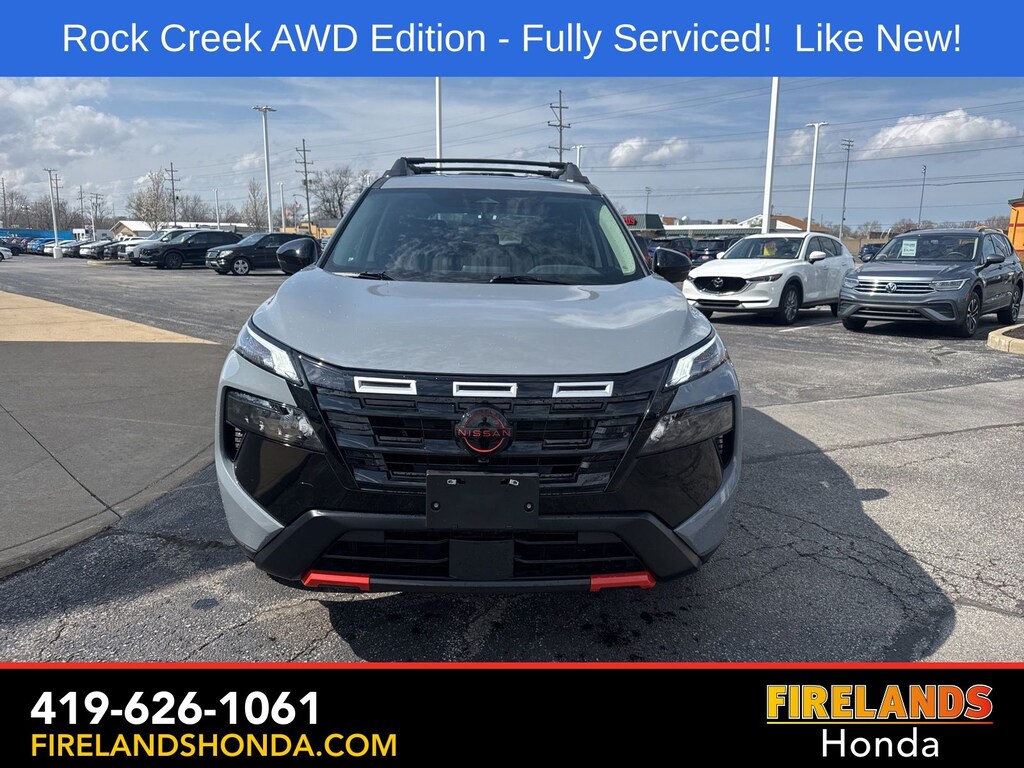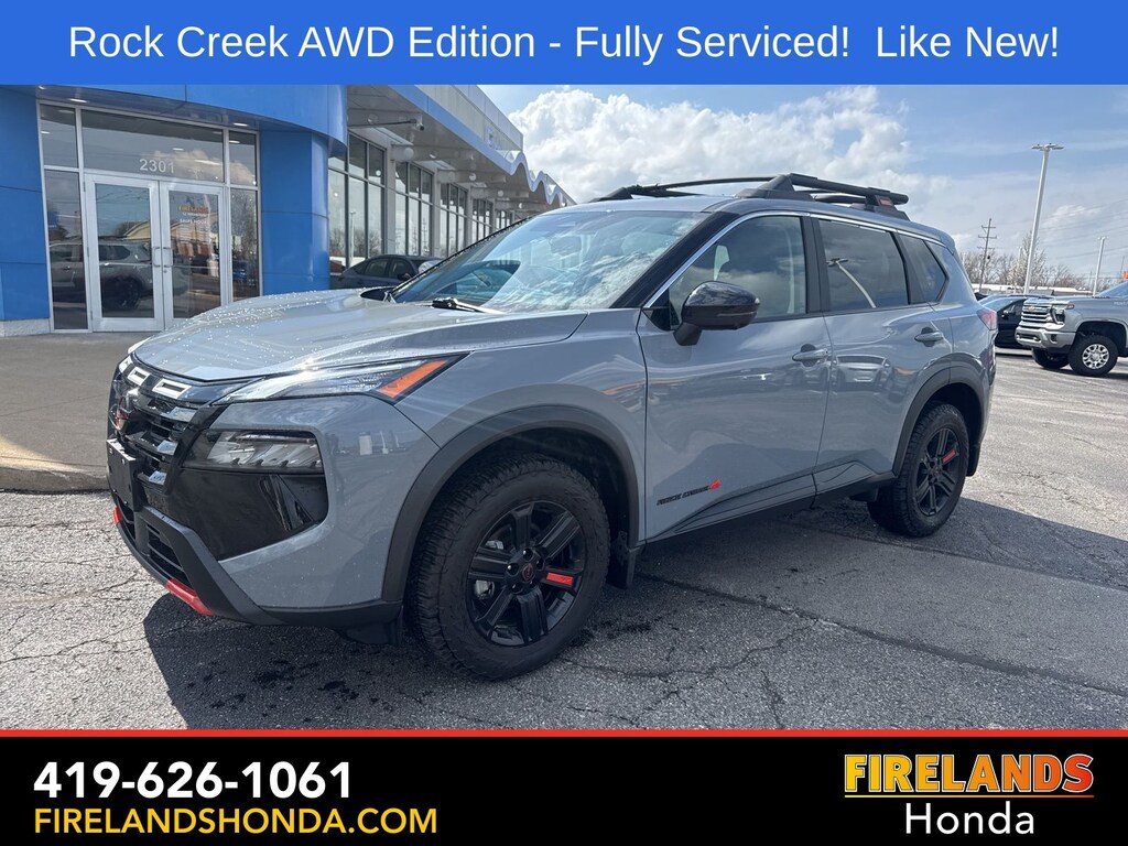 Firelands Honda is proud to offer this terrific-looking 2025 Nissan Rogue in Boulder Gray Pearl. This Rogue has been checked by our award winning service department. Hot features include: Bluetooth Hands Free, Back Up Camera, Remote Start, Adaptive Cruise Control, Balance of Factory Warranty, Service Records Available, All-Wheel Drive, Heated Leather Seats, Lane Departure Warning, Apple Carplay/Android Auto, Blind Spot Detection, Automatic Emergency Braking, Forward Collision Warning, Rear Cross Traffic Alert, Wireless Charging Pad, Clean CARFAX, One Owner, No Accidents, Power Liftgate, 4-Way Power Passenger Seat, Auto-Dimming Inside Mirror, Heated Steering Wheel, Interior LED Accent Lighting, Memory Driver Seat and Outside Mirrors, Motion-Activated Power Liftgate, Reverse Tilt-Down Outside Mirrors with Integrated Turn Signals, Rock Creek Premium Package, Wireless Charging Pad.
