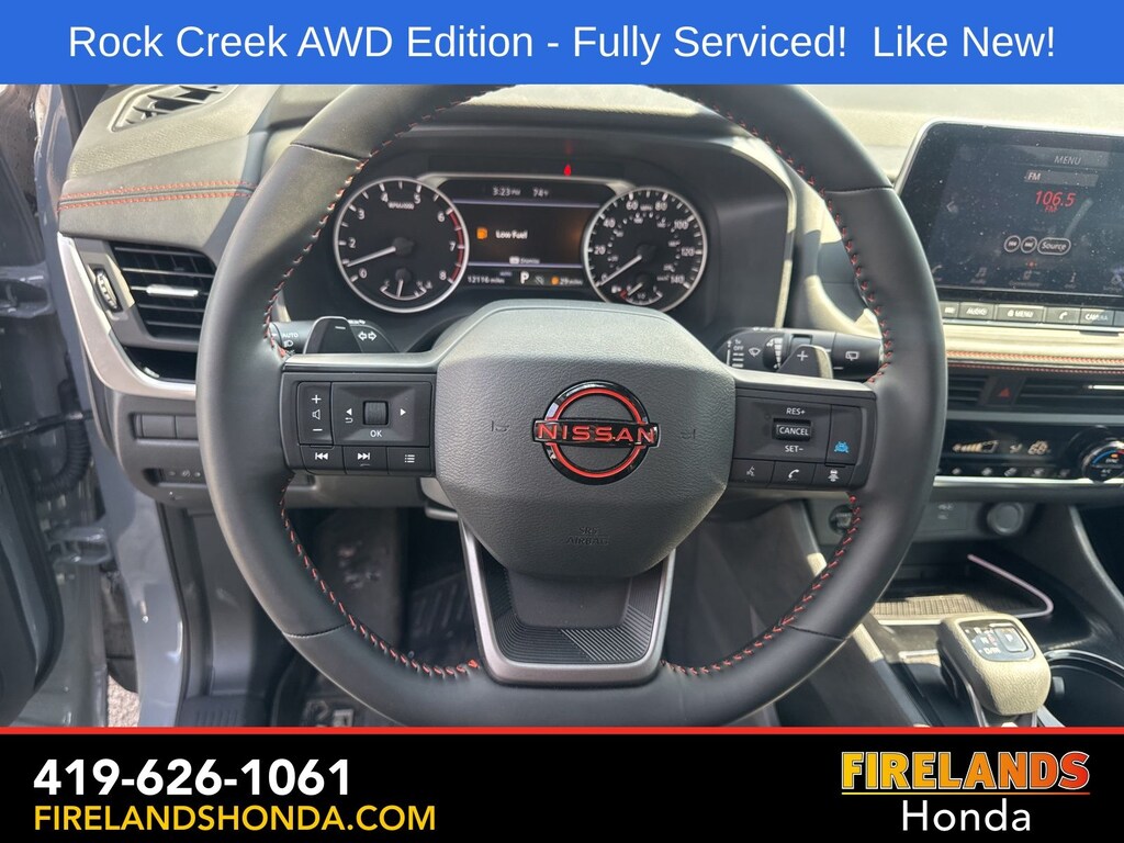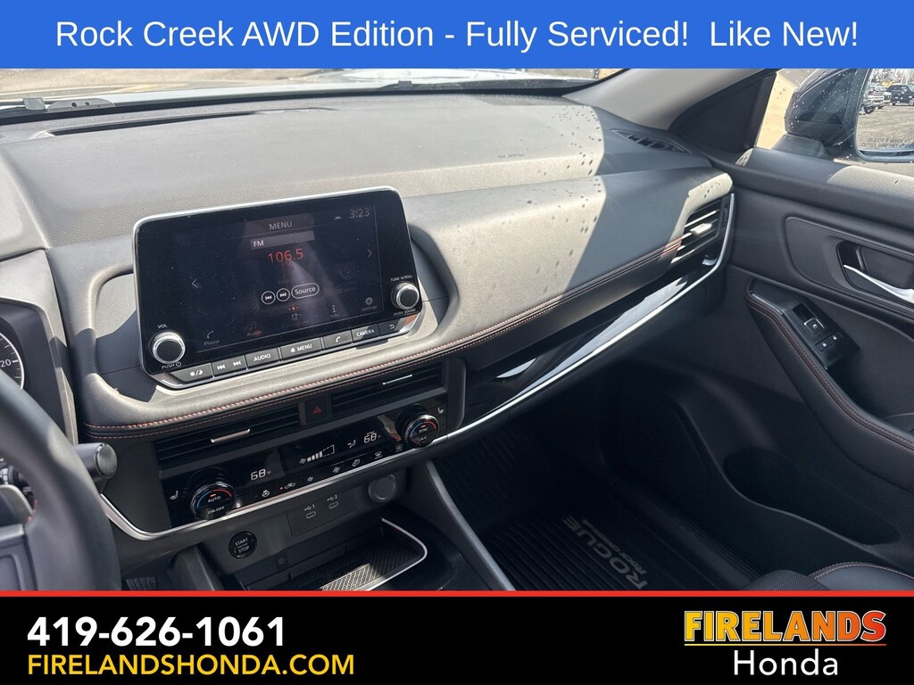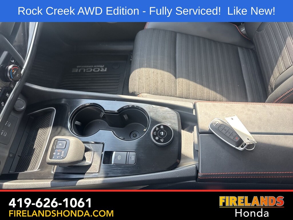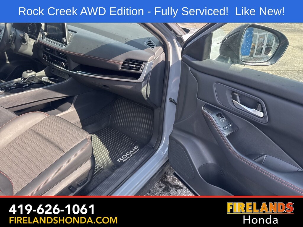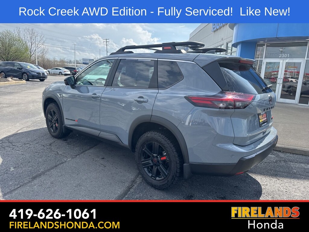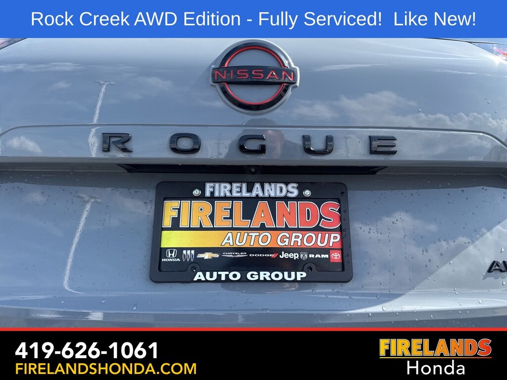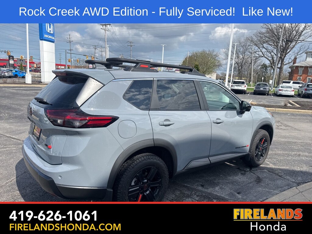 Firelands Honda is proud to offer this terrific-looking 2025 Nissan Rogue in Boulder Gray Pearl. This Rogue has been checked by our award winning service department. Hot features include: Bluetooth Hands Free, Back Up Camera, Remote Start, Adaptive Cruise Control, Balance of Factory Warranty, Service Records Available, All-Wheel Drive, Heated Leather Seats, Lane Departure Warning, Apple Carplay/Android Auto, Blind Spot Detection, Automatic Emergency Braking, Forward Collision Warning, Rear Cross Traffic Alert, Wireless Charging Pad, Clean CARFAX, One Owner, No Accidents, Power Liftgate, 4-Way Power Passenger Seat, Auto-Dimming Inside Mirror, Heated Steering Wheel, Interior LED Accent Lighting, Memory Driver Seat and Outside Mirrors, Motion-Activated Power Liftgate, Reverse Tilt-Down Outside Mirrors with Integrated Turn Signals, Rock Creek Premium Package, Wireless Charging Pad.