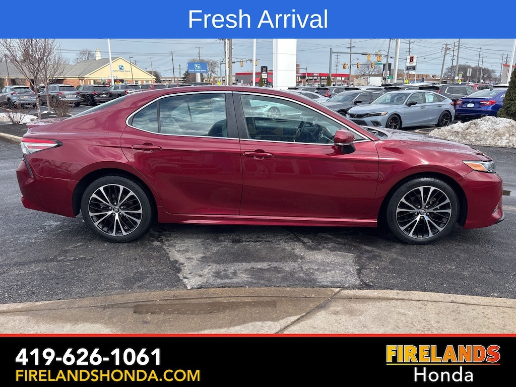 Firelands Honda is proud to offer this wonderful 2018 Toyota Camry in Ruby Flare Pearl. This Camry has been checked by our award winning service department. Hot features include: Bluetooth Hands Free, Back Up Camera, Local Trade, Adaptive Cruise Control, Service Records Available, Lane Departure Warning, Automatic Emergency Braking, Forward Collision Warning, Clean CARFAX, No Accidents.