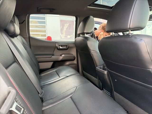 The TRD Pro package takes this Tacoma's off-road performance to the next level, with features like the TRD-tuned off-road suspension, Rigid Industries LED fog lights, and the powerful TRD Pro cat-back exhaust. Pair that with the sleek black exterior, hood graphics, and TRD Pro badging, and you've got a head-turning truck that's ready to conquer any terrain.