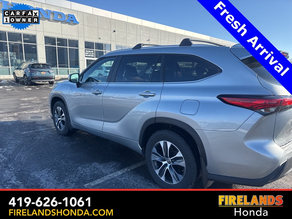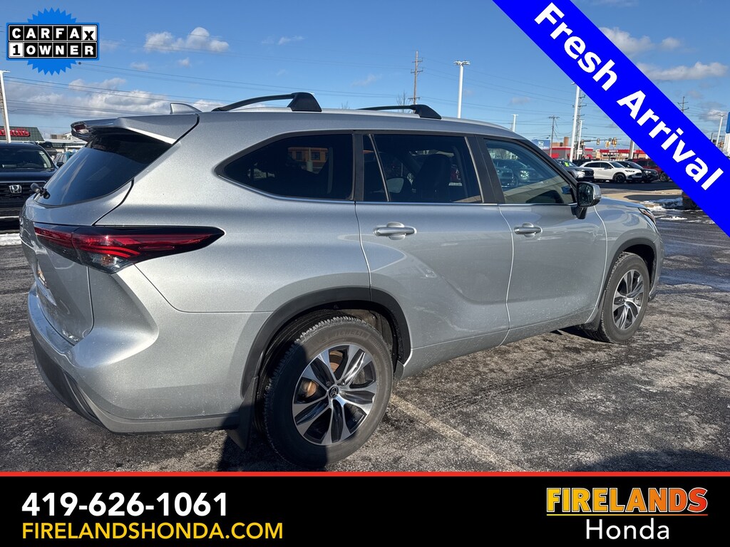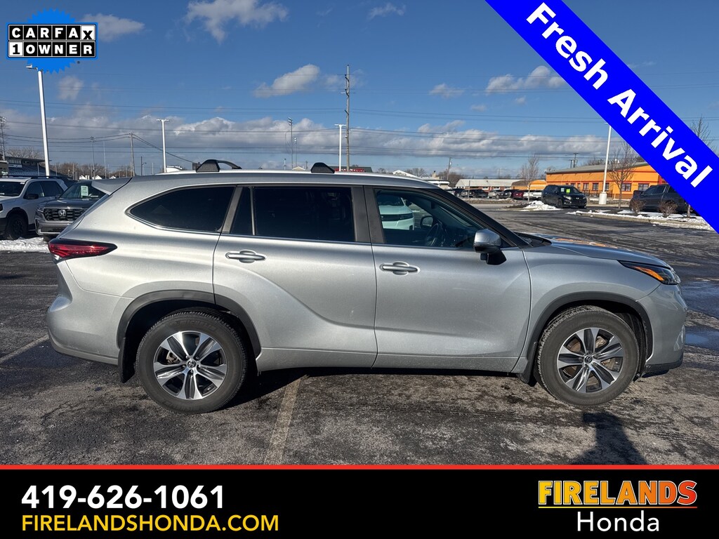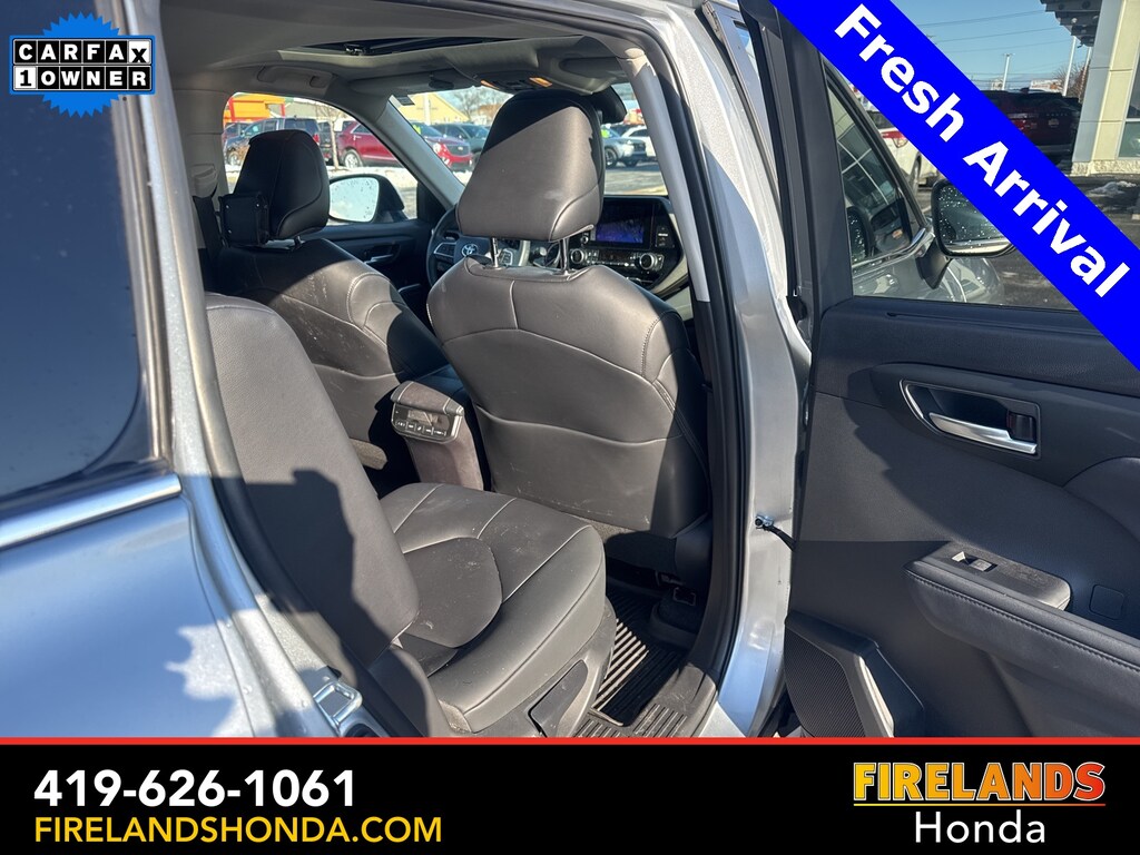 Firelands Honda is proud to offer this superb 2023 Toyota Highlander in Silver. This Highlander has been checked by our award winning service department. Hot features include: Bluetooth Hands Free, Back Up Camera, Local Trade, Adaptive Cruise Control, Balance of Factory Warranty, Service Records Available, All-Wheel Drive, Heated Leather Seats, 3rd Row Seating, Locally Owned New Car Trade, Lane Departure Warning, Apple Carplay/Android Auto, Blind Spot Detection, Fog Lights, Automatic Emergency Braking, Forward Collision Warning, Rear Cross Traffic Alert, Wireless Charging Pad, Moonroof / Sunroof, Clean CARFAX, One Owner, No Accidents, 7 Passenger Seating, Power Liftgate, Captains Chairs.