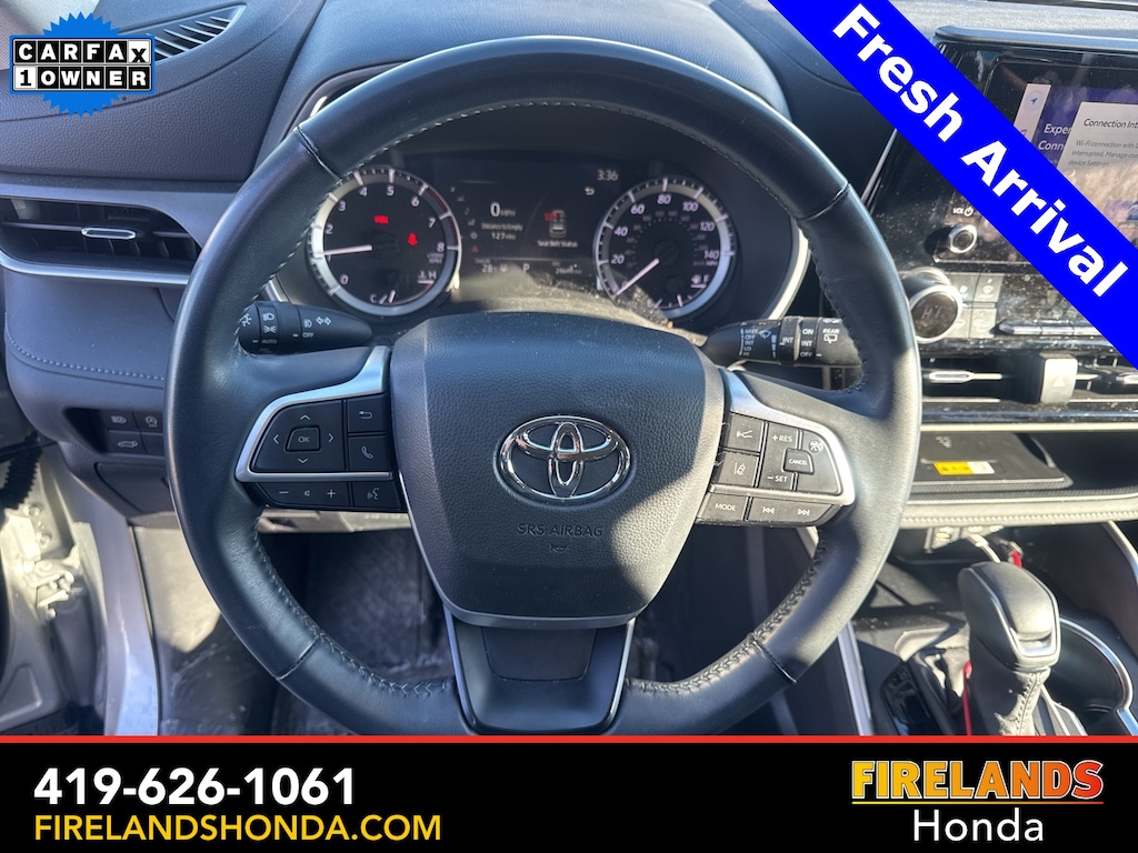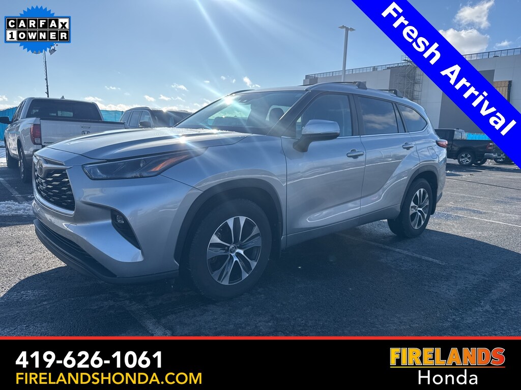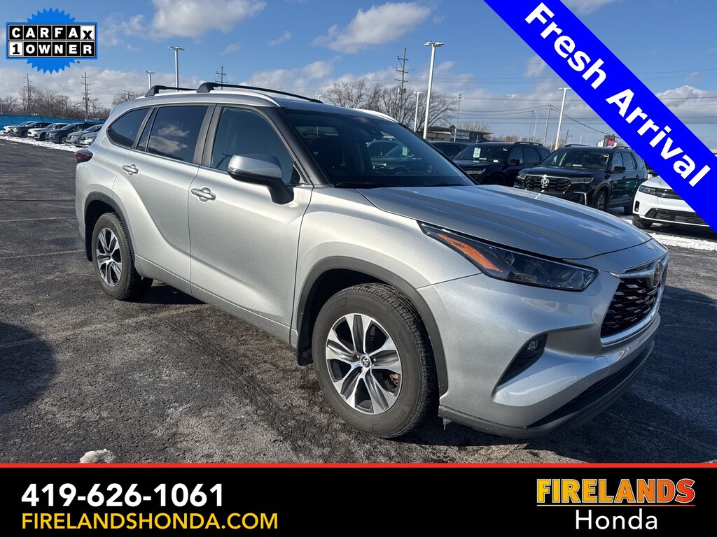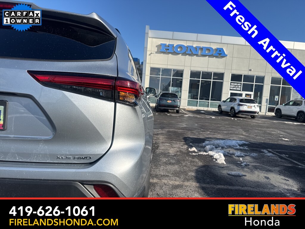 Firelands Honda is proud to offer this superb 2023 Toyota Highlander in Silver. This Highlander has been checked by our award winning service department. Hot features include: Bluetooth Hands Free, Back Up Camera, Local Trade, Adaptive Cruise Control, Balance of Factory Warranty, Service Records Available, All-Wheel Drive, Heated Leather Seats, 3rd Row Seating, Locally Owned New Car Trade, Lane Departure Warning, Apple Carplay/Android Auto, Blind Spot Detection, Fog Lights, Automatic Emergency Braking, Forward Collision Warning, Rear Cross Traffic Alert, Wireless Charging Pad, Moonroof / Sunroof, Clean CARFAX, One Owner, No Accidents, 7 Passenger Seating, Power Liftgate, Captains Chairs.