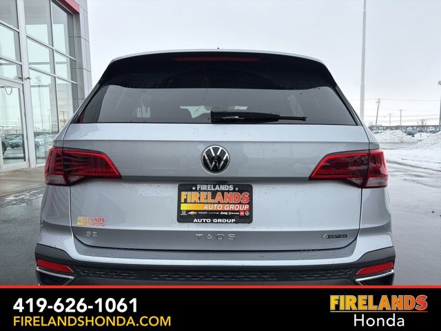 Firelands Honda is proud to offer this charming 2024 Volkswagen Taos in Silver Metallic. This Taos has been checked by our award winning service department. Hot features include: Bluetooth Hands Free, Back Up Camera, Remote Start, Adaptive Cruise Control, Balance of Factory Warranty, Service Records Available, All-Wheel Drive, Apple Carplay/Android Auto, Blind Spot Detection, Fog Lights, Automatic Emergency Braking, Forward Collision Warning, Rear Cross Traffic Alert, Clean CARFAX, One Owner, No Accidents, Heated Steering Wheel, Heated Front Seats.