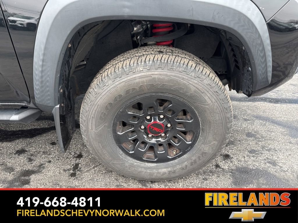 Elevate your driving experience with the Tacoma TRD Pro's impressive array of features, including a TRD-tuned off-road suspension, 16-inch TRD Pro black alloy wheels, and a power sliding rear window with privacy glass. Enjoy the convenience of keyless entry, steering wheel-mounted audio controls, and dual-zone automatic climate control. The premium audio system and satellite radio will keep you entertained on every adventure.